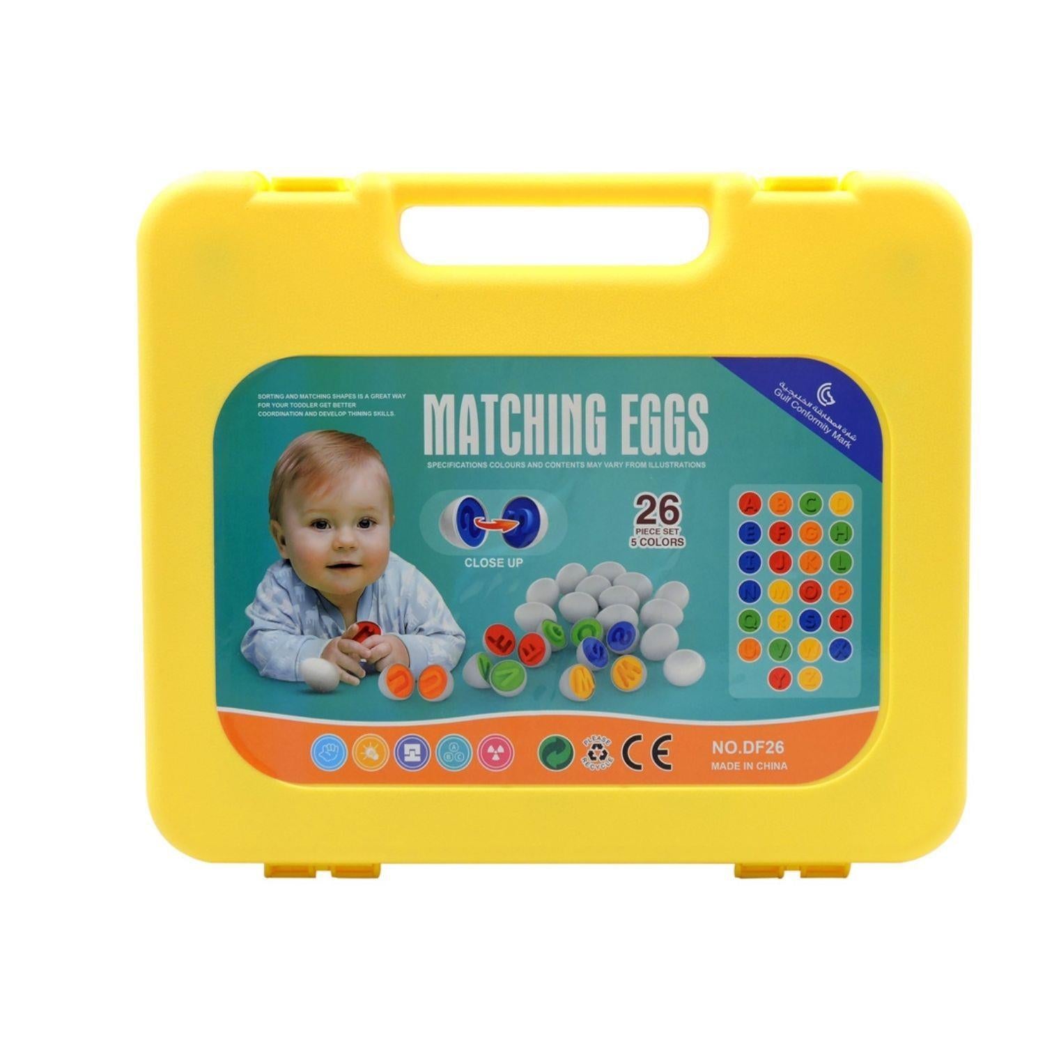- Eggs-ellent Toy: An instant hit and amazing improvement of matching eggs! 26 white eggs that opened to colorful interiors with embossed 26 uppercase letters. Inside 5 true colors are red, blue, yellow, orange, green. Match the alphabet by the interior color and letters’ shape of the "yolk" and then works at connecting the pieces together.